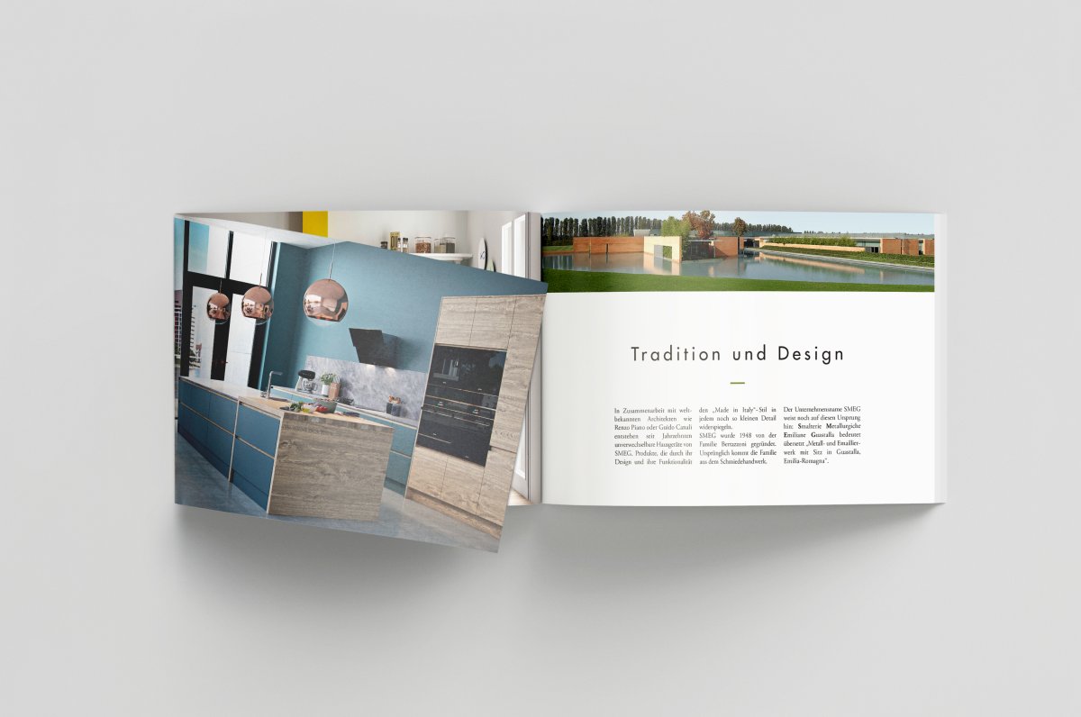 We develop a classic layout, which, however, allows a lot of leeway, especially when it comes to the arrangement of the pictures. Parts of the brochure are designed as a wrap-around folding.